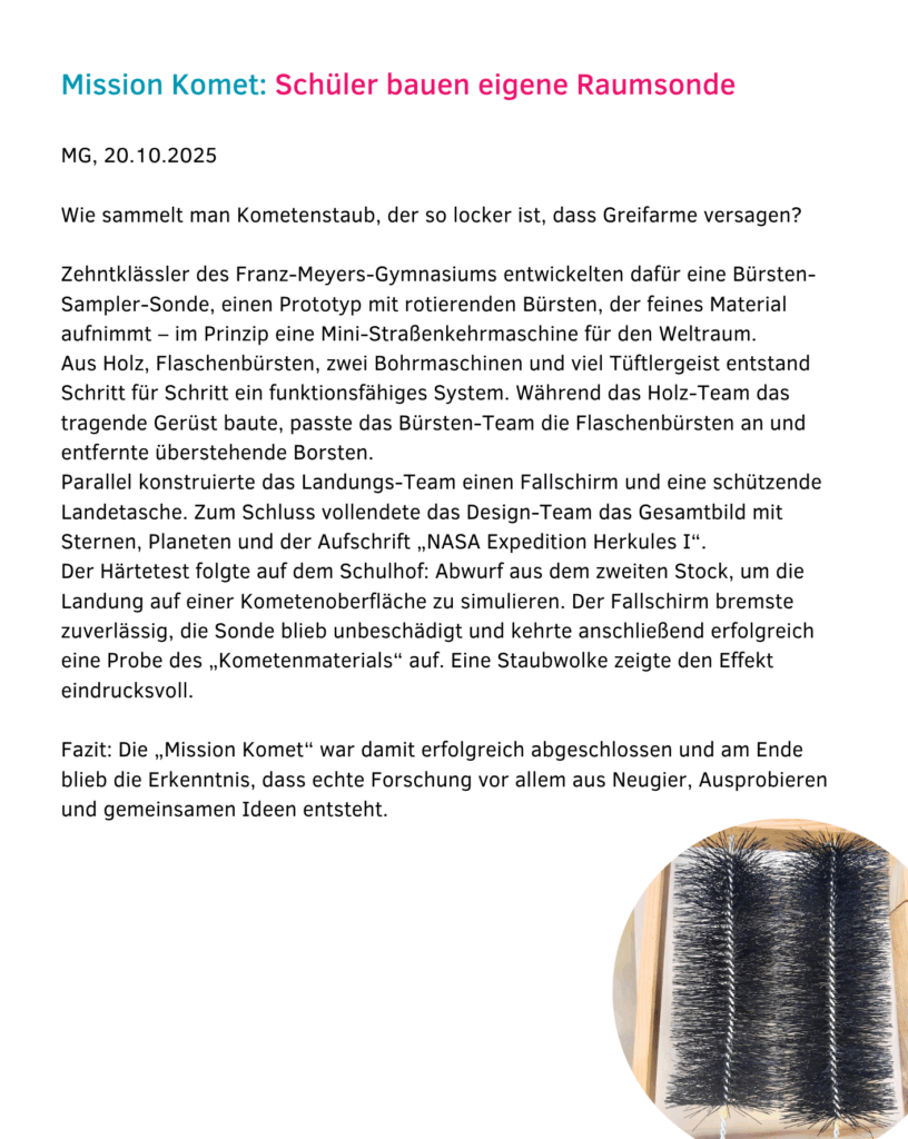 Mission Komet: Schüler bauen eigene Raumsonde